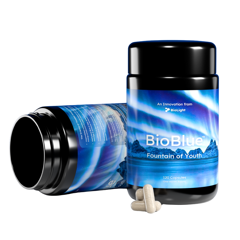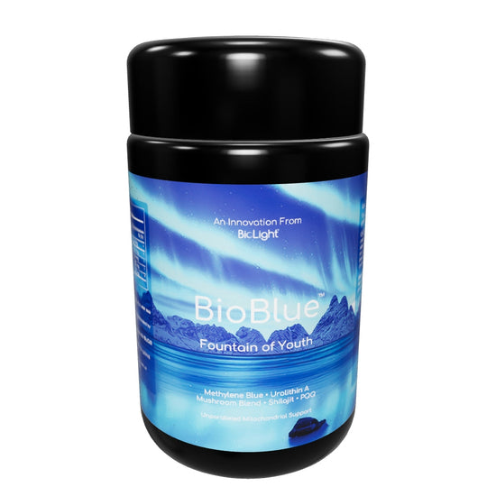 BioBlue Fountain of Youth Supplement | Mitochondrial Support with Methylene Blue & Mushrooms | Red Light Therapy Enhancer