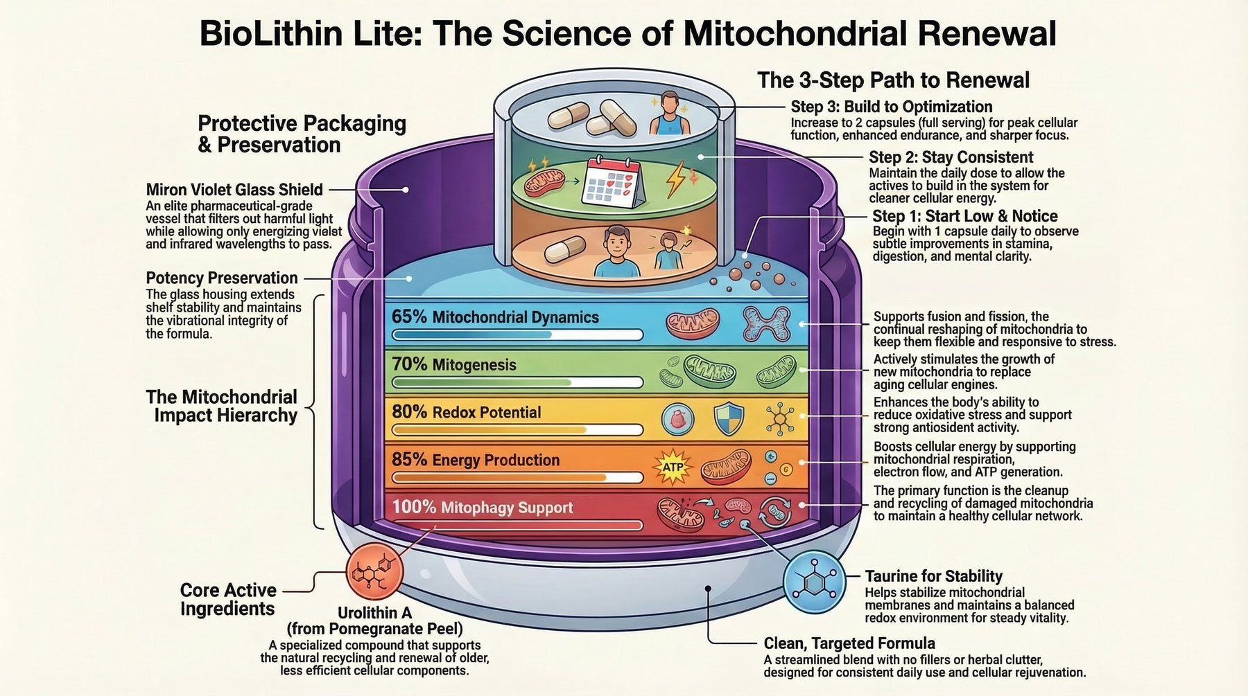 These timelines are best framed as supportive wellness expectations, not guaranteed outcomes. Human studies on urolithin A show that benefits tend to build over time rather than appearing like a stimulant effect.