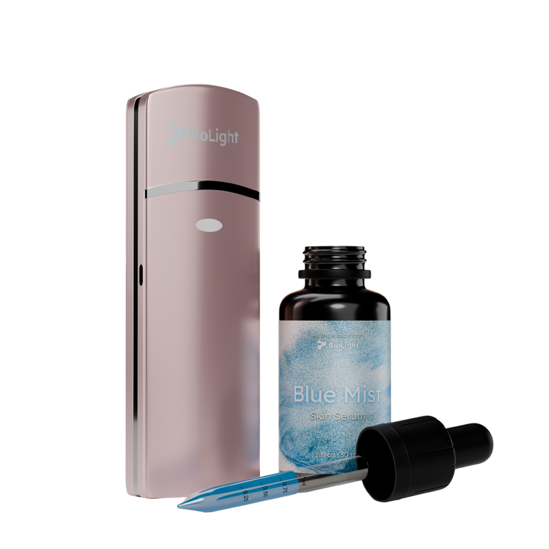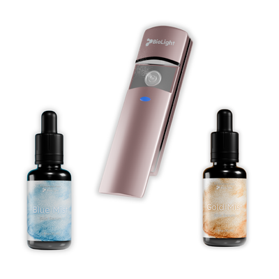 After cleansing your skin, prep the skin with the ion balance of BioMinerals Mist or BioMinerals Gold Mist. This helps set the stage for the Blue Mist application.