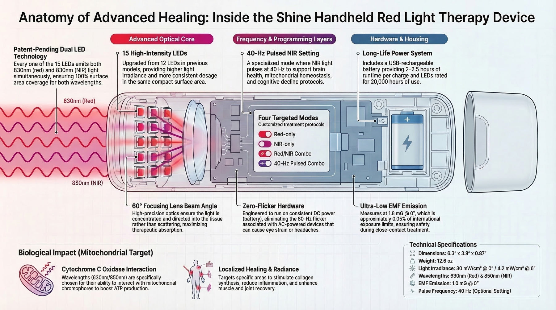 Uses two of the most recognized PBM wavelength ranges for cellular energy and tissue support.